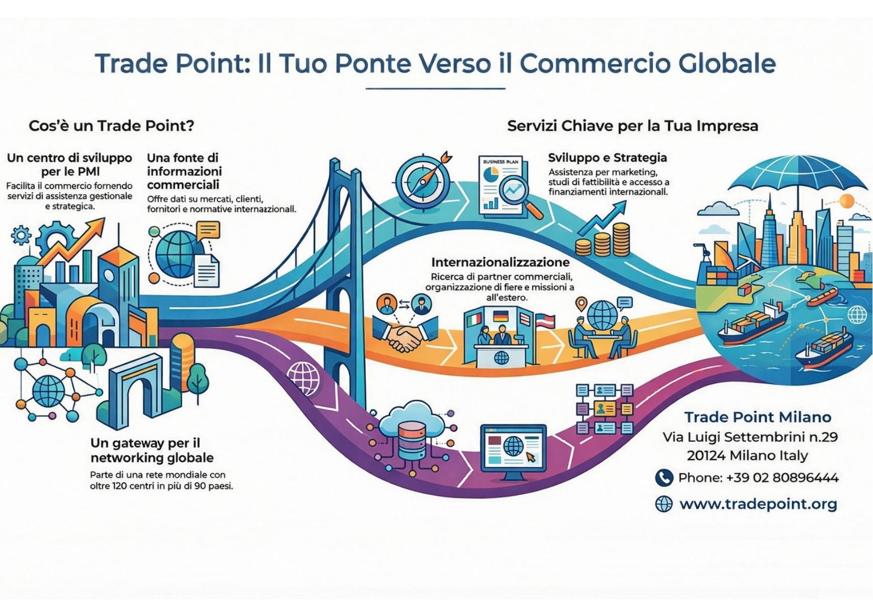 Trade Point Milano è parte della rete globale della World Trade Point Federation (WTPF), organizzazione internazionale nata nell'ambito del programma UNCTAD delle Nazioni Unite per facilitare il commercio mondiale e sostenere lo sviluppo economico.